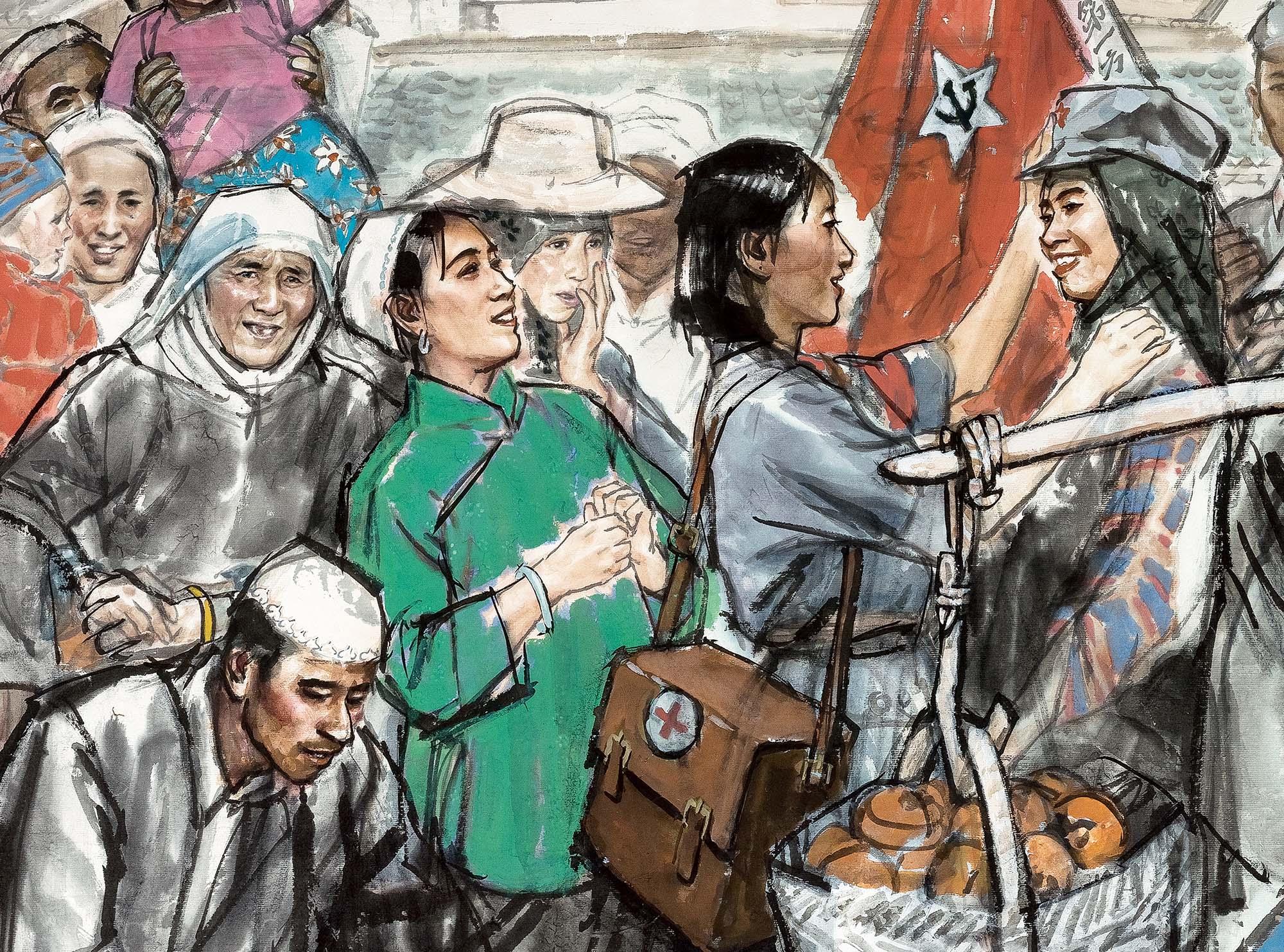 3 红军路过哈达铺 局部 邸超 纸本水墨设色 2016