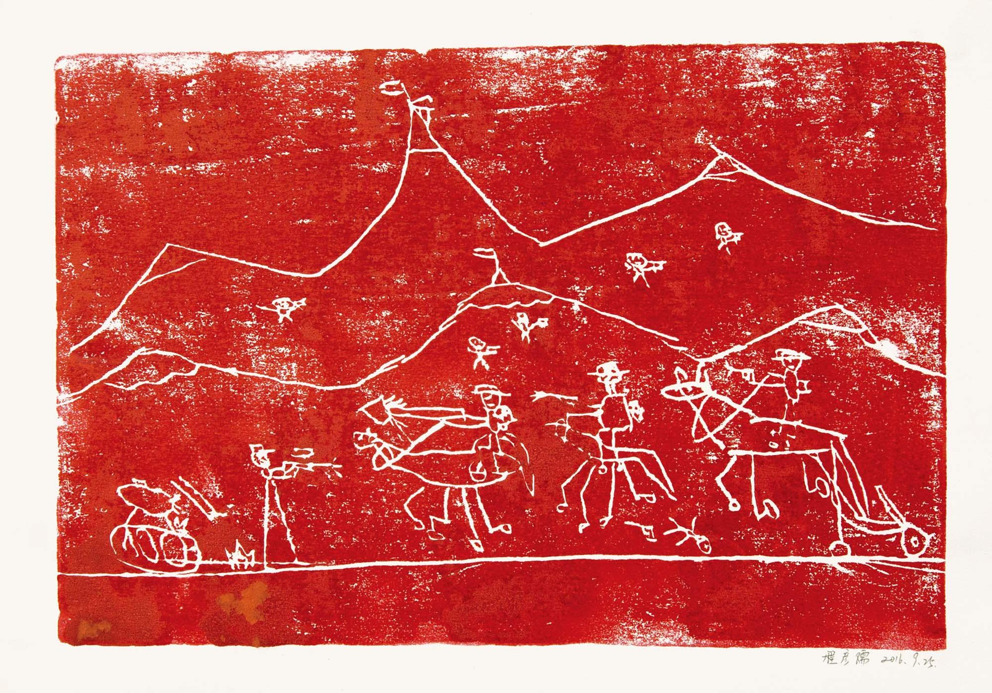 5 红军不怕远征难 组作品 小学生 吹塑纸版画 2016