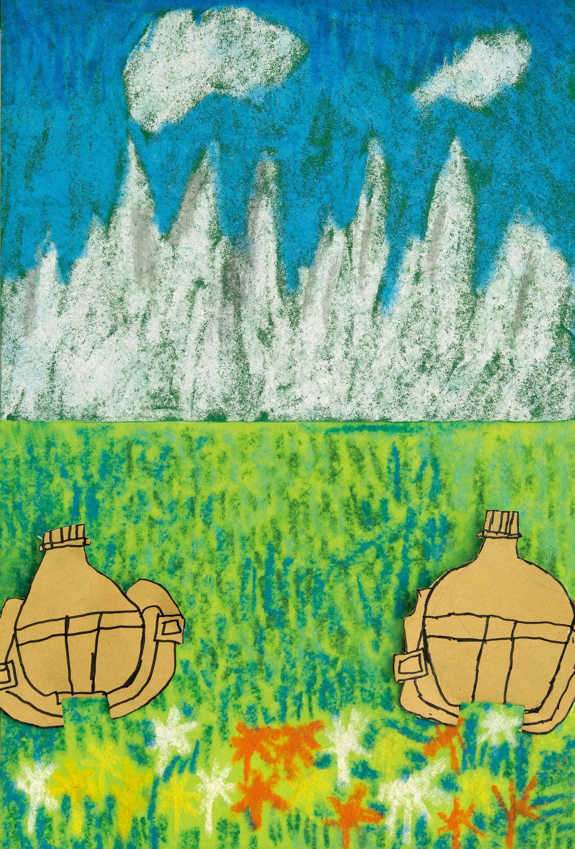 9 金沙水拍云崖暖 组作品 小学生作品 纸本色粉 2016